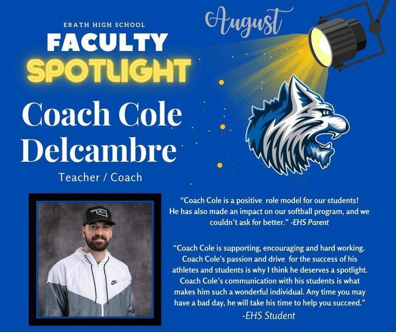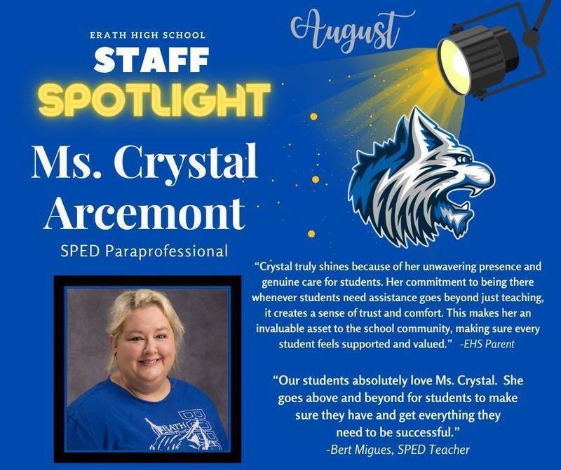 Our August Faculty and Staff Spotlight! Congratulations to Ms. Crystal and Coach Cole!